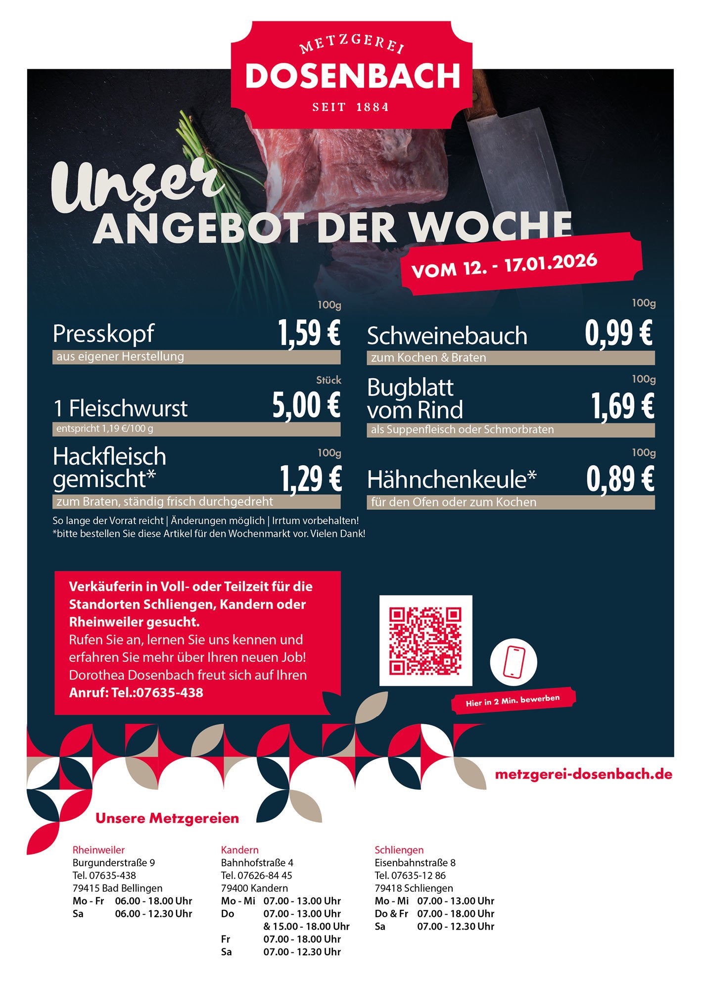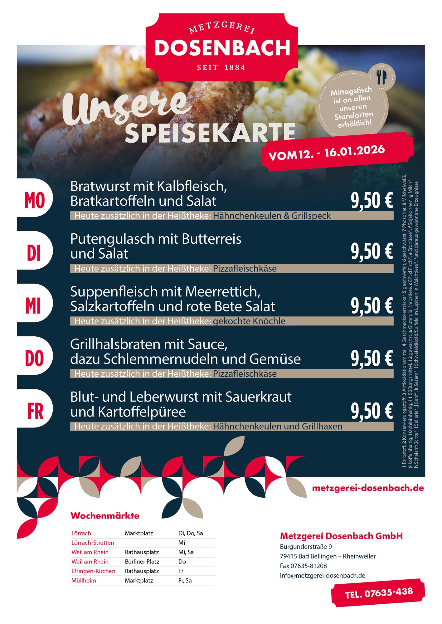 Wochenangebot & Speiseplan vom 12.01. bis 17.01.26