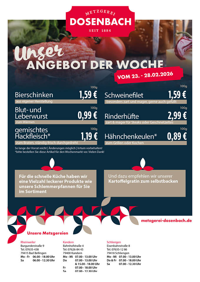 Wochenangebot & Speiseplan vom 23.02. bis 28.02.26