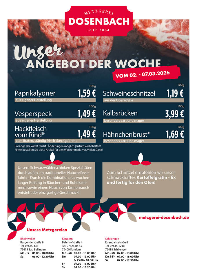 Wochenangebot & Speiseplan vom 02.03. bis 07.03.26
