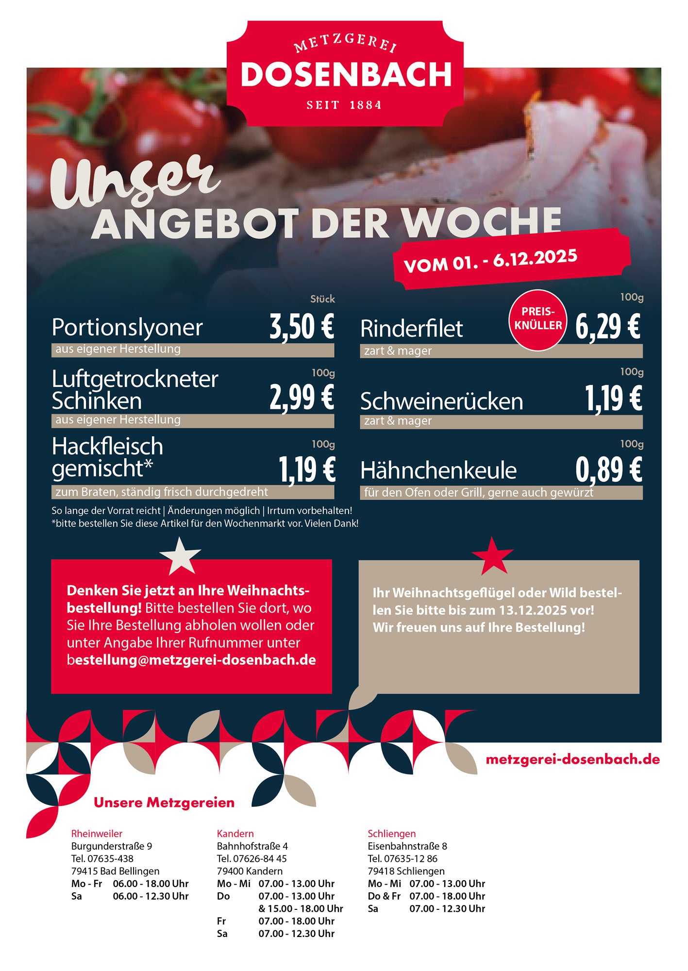 Wochenangebot & Speiseplan vom 01.12.-06.12.2025