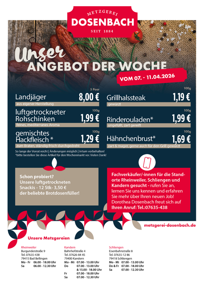 Unser freundliches Team in den Filialen steht Ihnen mit fachkundiger Beratung zur Seite, um Ihnen bei der Auswahl Ihrer Lieblingsprodukte behilflich zu sein. Egal, ob Sie auf der Suche nach klassischen Wurstwaren sind oder gerne etwas Neues ausprobieren möchten - bei uns finden Sie garantiert das Passende für Ihren Gaumen.