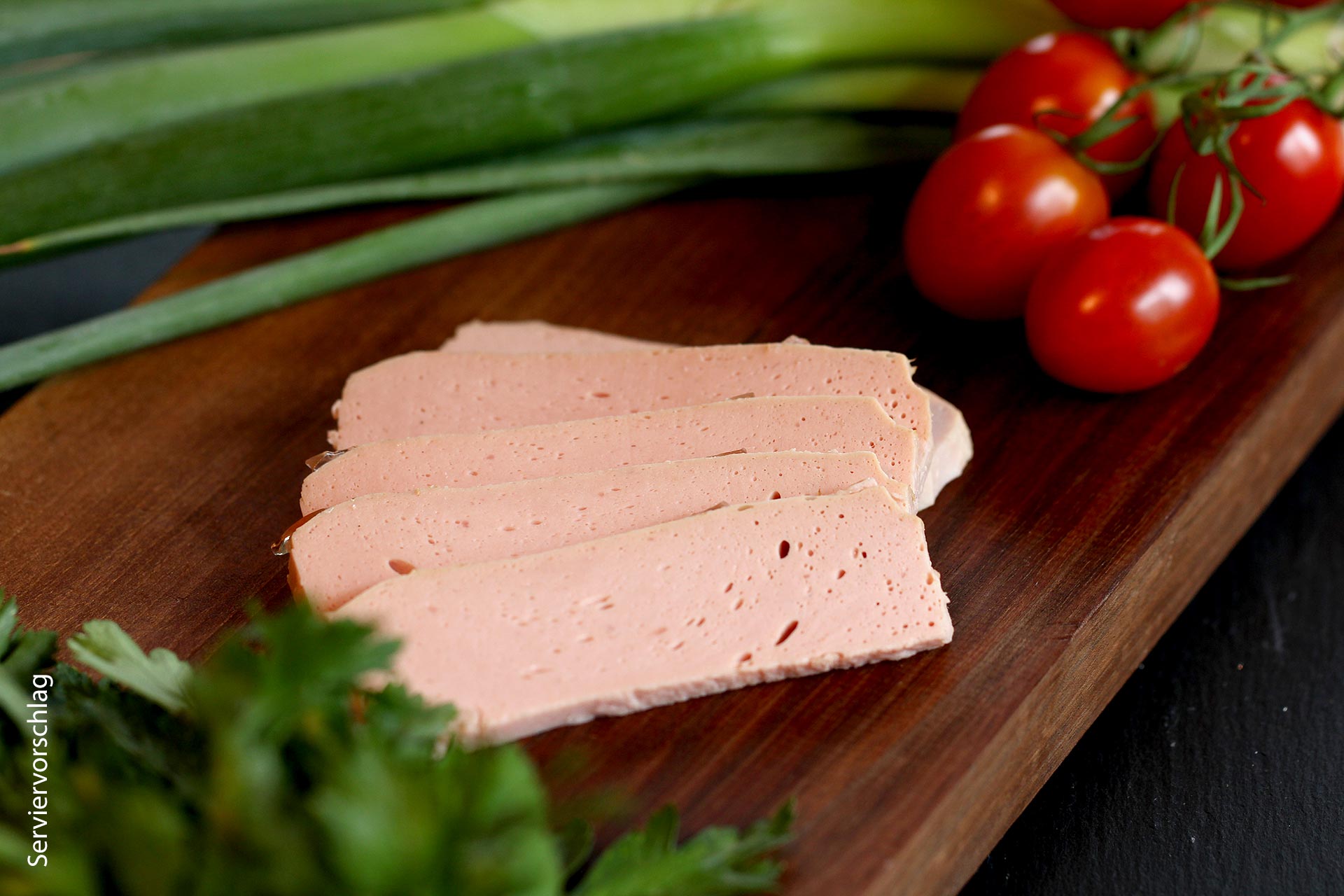 Schweinefleisch 57%, Kalbfleisch 8%, Speck, Trinkwasser, Stärke, Pökelsalz (Speisesalz, Konservierungsstoff: E 250), Gewürze, Gewürzextrakt, SENFMEHL, Dextrose, Antioxidationsmittel: E 300, Emulgator: E 472c, Geschmacksverstärker: E 621, Säureregulator: E 262, Stabilisator: E 450, Verdickungsmittel: E 412
